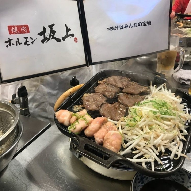坂上独自の鉄板で絶品ホルモンをホルモン坂上では従来の網焼きとは違った味を楽しんでいただけます。