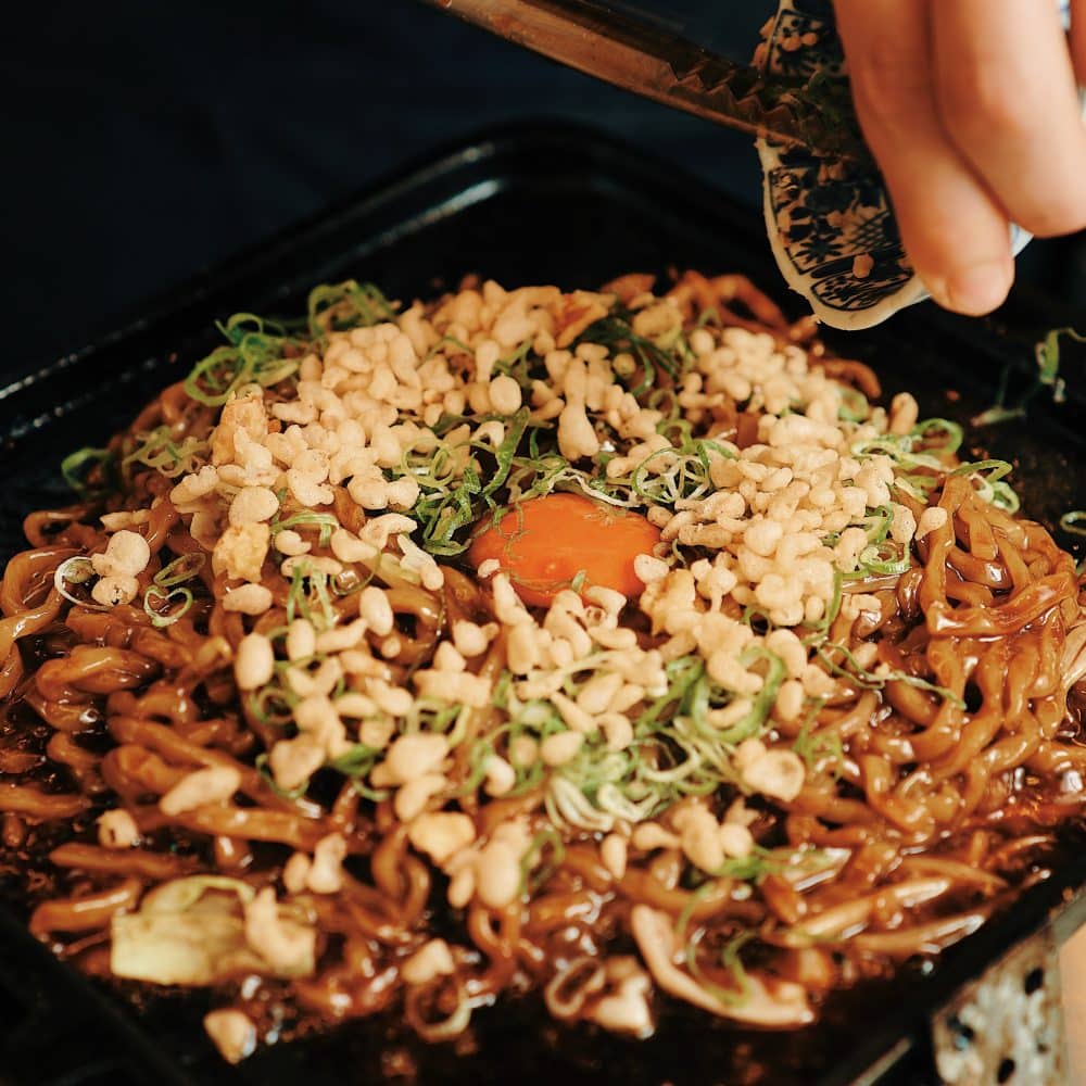 肉汁が落ちるように設計された特殊な鉄板からしたたり落ちる旨味の詰まった肉汁を特製の濃厚ダレにため込み、〆の麺に使用いたします。